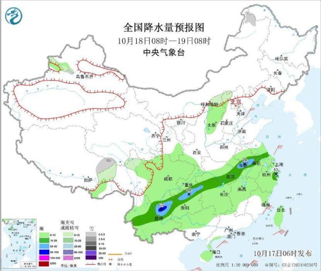 昨日,四川东北部、重庆北部、陕西南部、山西南部、河南西部、湖北西部、云南中部等地出现大到暴雨,部分地区甚至出现了大暴雨。预计17日,较强降雨落区将东移南压,影响重庆东部、贵州北部、湖北中西部、湖南西北部、河南中东部、山东南部、安徽北部和江苏北部等地,局地有大暴雨。明天,降雨区域将进一步南移,但强度会显著减弱。