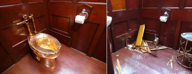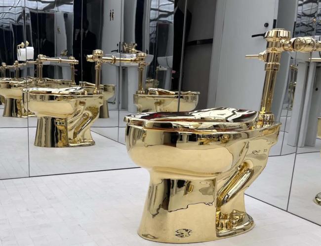 首版“黄金马桶”曾在纽约古根海姆博物馆展出,并允许参观者使用,被称为与艺术作品进行“前所未有亲密接触”的机会。2019年9月14日,这只马桶在英国丘吉尔故居展出时被盗。今年初,两名窃贼被判有罪,但马桶至今下落不明,调查人员认为其很可能已被拆解并熔毁。