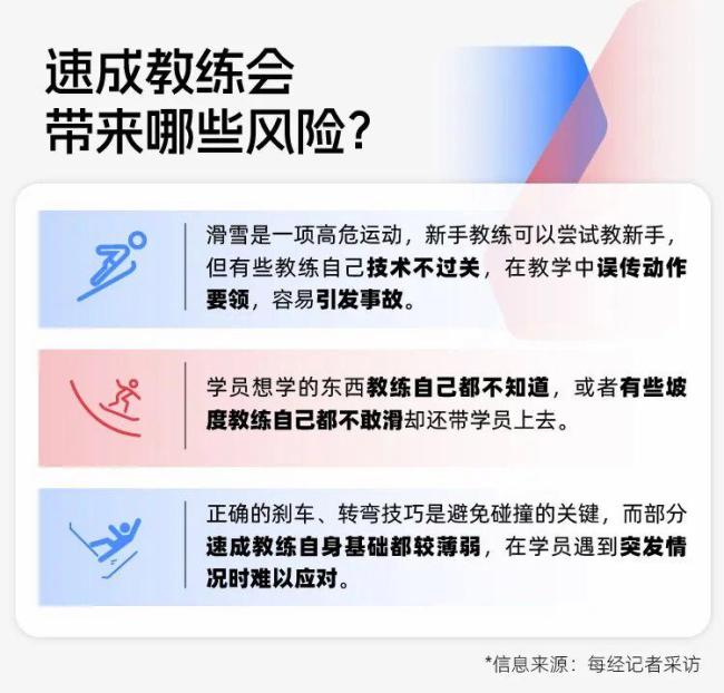 然而,调查发现,这本教练证书成了培训机构的吸金噱头。滑雪是高危体育项目,但部分培训机构却招收零基础的学员,经过5天的短暂培训就送去参加教练证书考试,还存在培训学时“注水”、管理松散等问题。
